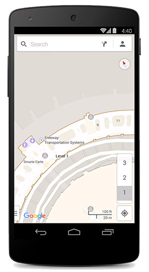 Met plattegronden in Google Maps zijn bezoekers minder tijd kwijt aan het zoeken naar locaties in gebouwen. Zo houden ze meer tijd over om nieuwe interessante plaatsen te verkennen. Gebruik plattegronden om moeiteloos in en uit te zoomen in een gebouw en om van de ene verdieping naar de andere te gaan.